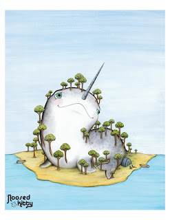 "The Return" - new print available in my etsy shop. This image was used for August in the 2014 narwhal calendar. I still have a few left in my shop!
